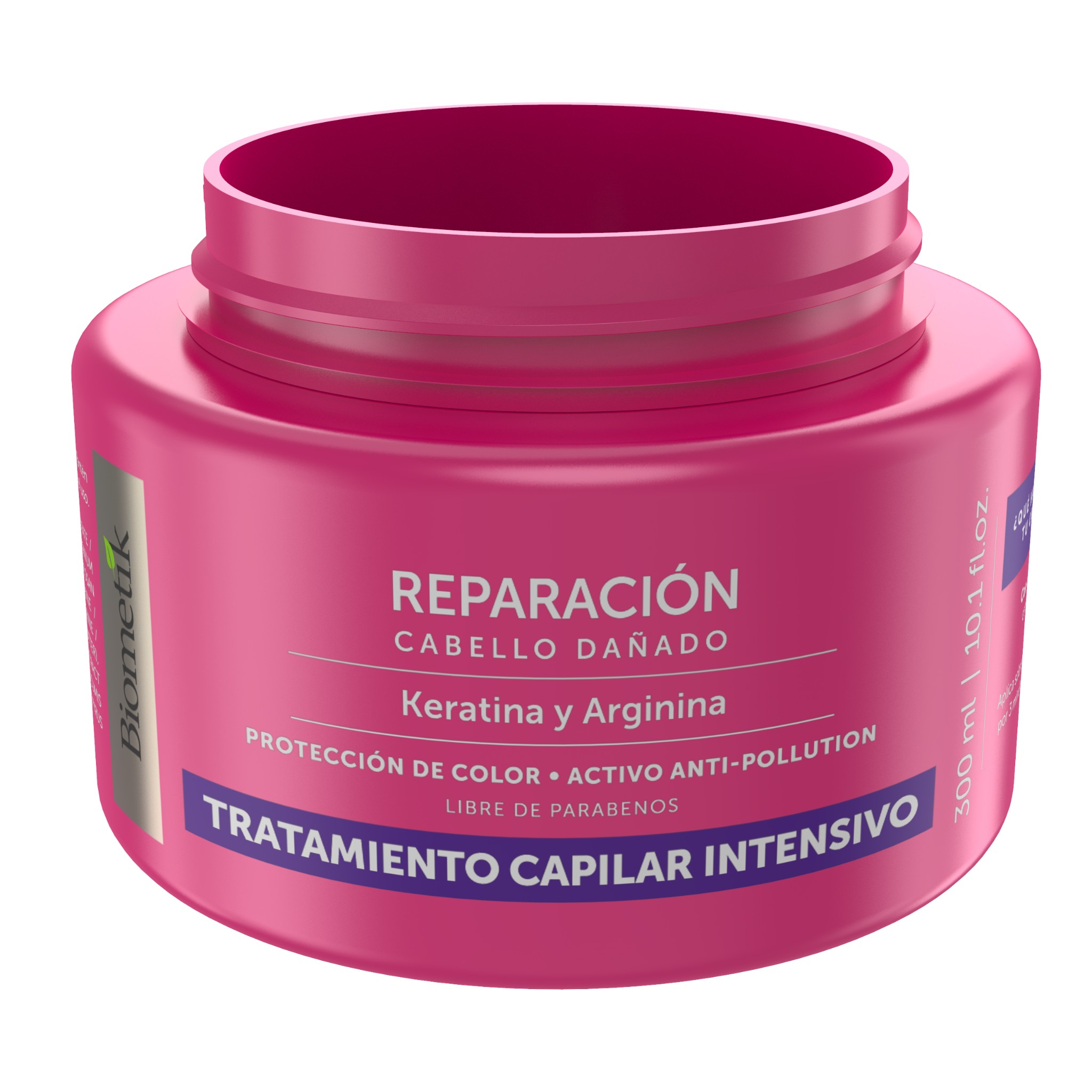 - Utilízalo después del Shampoo y Acondicionador Keratina y Arginina para mejores resultados, en la ducha dejando actuar 3 minutos. La línea Biometik es libre de parabenos.